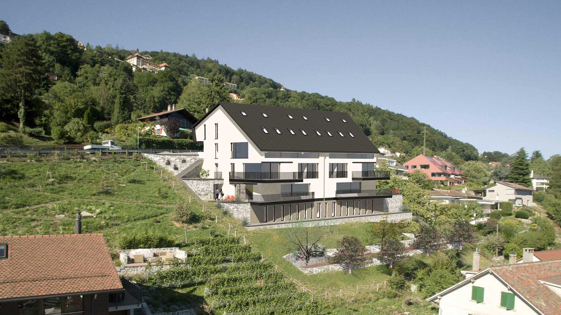 Construction d’un bâtiment de 6 appartements, d’un parking intérieur de 13 places et une place de parc extérieure.