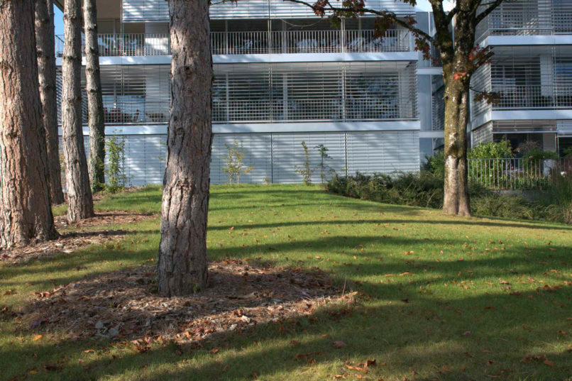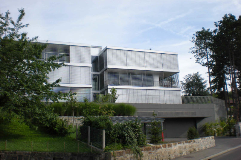 Construction de deux immeubles résidentiels (bât. B & C) et d’un parking souterrain de 28 places. Diminution de l’emprise du parking souterrain et redéfinition des aménagements extérieurs. Installation d’une pompe à chaleur par sondes géothermiques verticales, remplacement des fenêtres et création de 3 vélux.